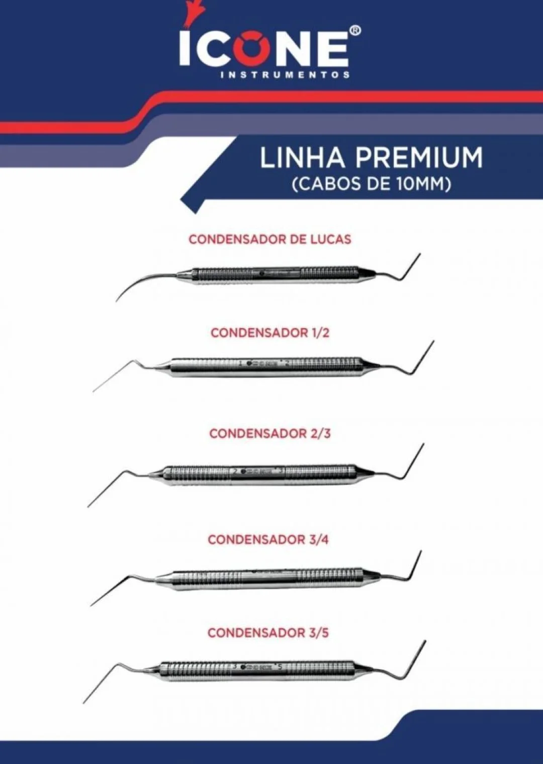 A Icone desenvolveu on instrumentos compactadores e condutores de calor, para fazer frente as novas técnicas obturadoras. Criou-os de forma cônica em obediência ao formato dos cones de Guta-Percha acompanhando suas coniciades.